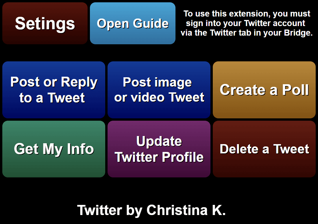 Once authenticated, you can start sending Tweets directly from SAMMI. Open the premade deck and follow the instructions in the comments of each button.